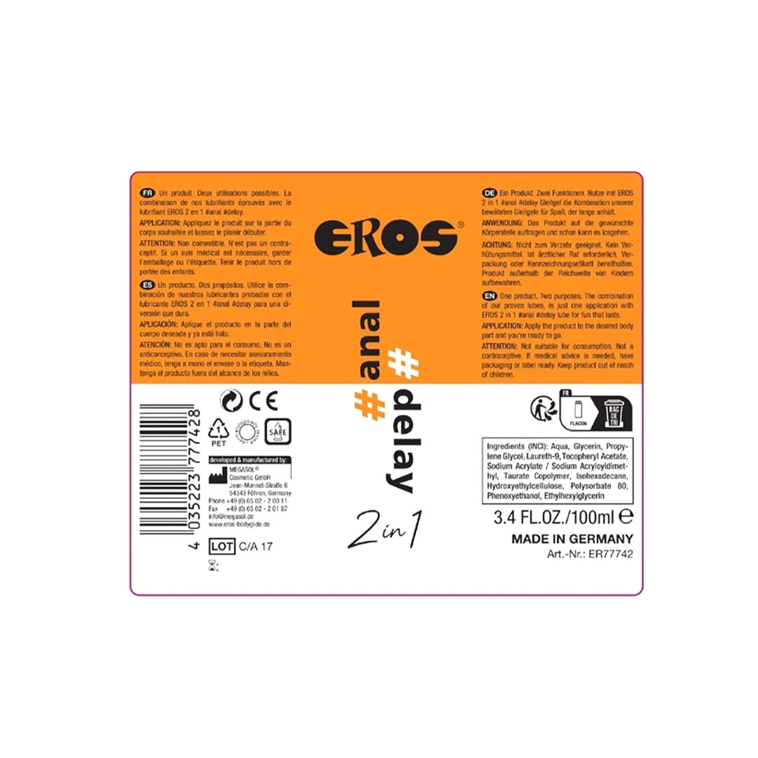 Lubrifiant 2 in 1 Eros Anal Delay 100ml – Doua functii esentiale pentru placerea anala fara efort.