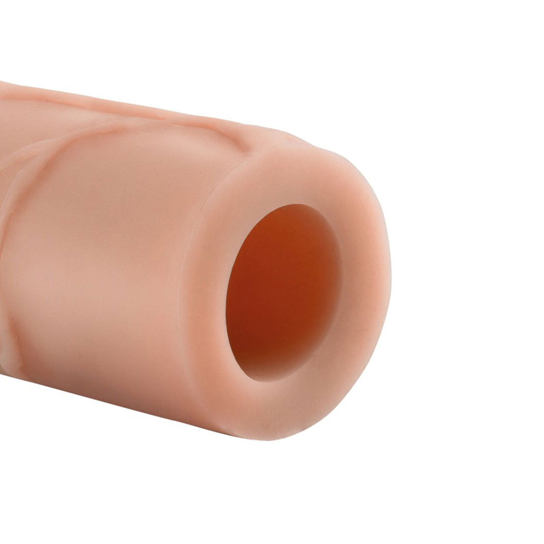 Fabricat din materialul Fanta Flesh, extensia se simte exact ca o a doua piele, oferind senzatii realiste si un confort sporit. Este suficient de stramta pentru a te ajuta sa rezisti mai mult, in timp ce extensia de 1 inch la varf asigura o penetrare mai profunda.