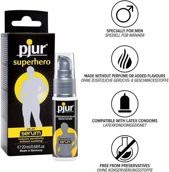 Pjur Superhero Delay Serum poate fi folosit in fiecare zi si este compatibil cu prezervativele din latex.