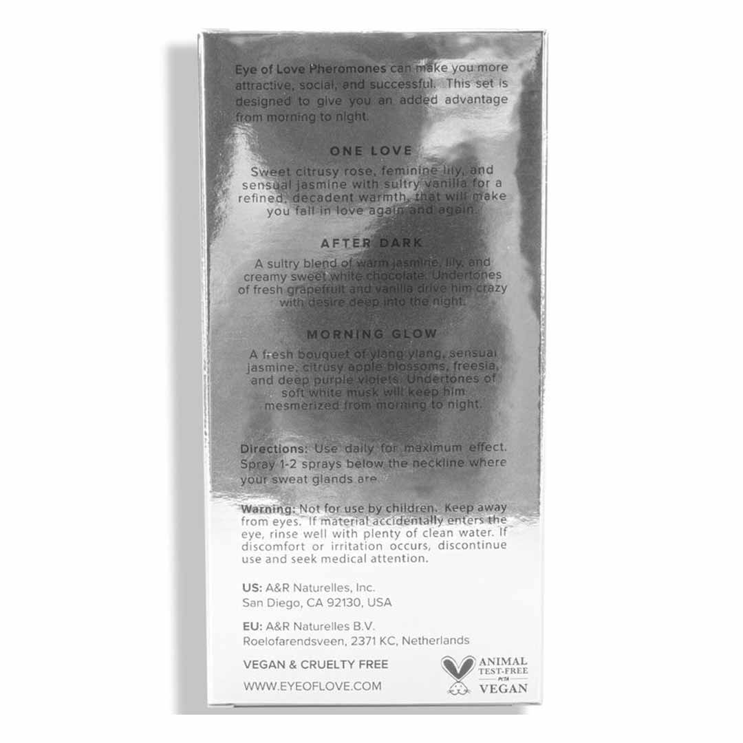 Setul de Parfum cu Feromoni Eye of love este ideal daca esti, fie in cautarea unui impuls in viata de zi cu zi, fie ca vrei sa te reconectezi cu partenerul. Vei gasi increderea necesara pentru a atrage seductia in viata ta.