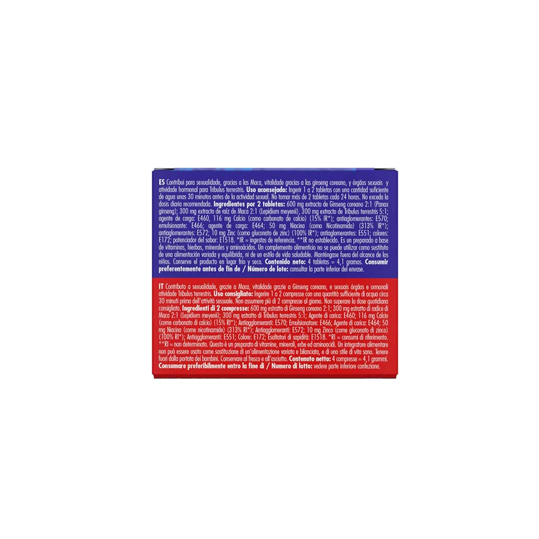 50 mg Niacina (nicotinamida) – sustine circulatia sanguina si metabolismul energetic, contribuind la o performanta sexuala imbunatatita.